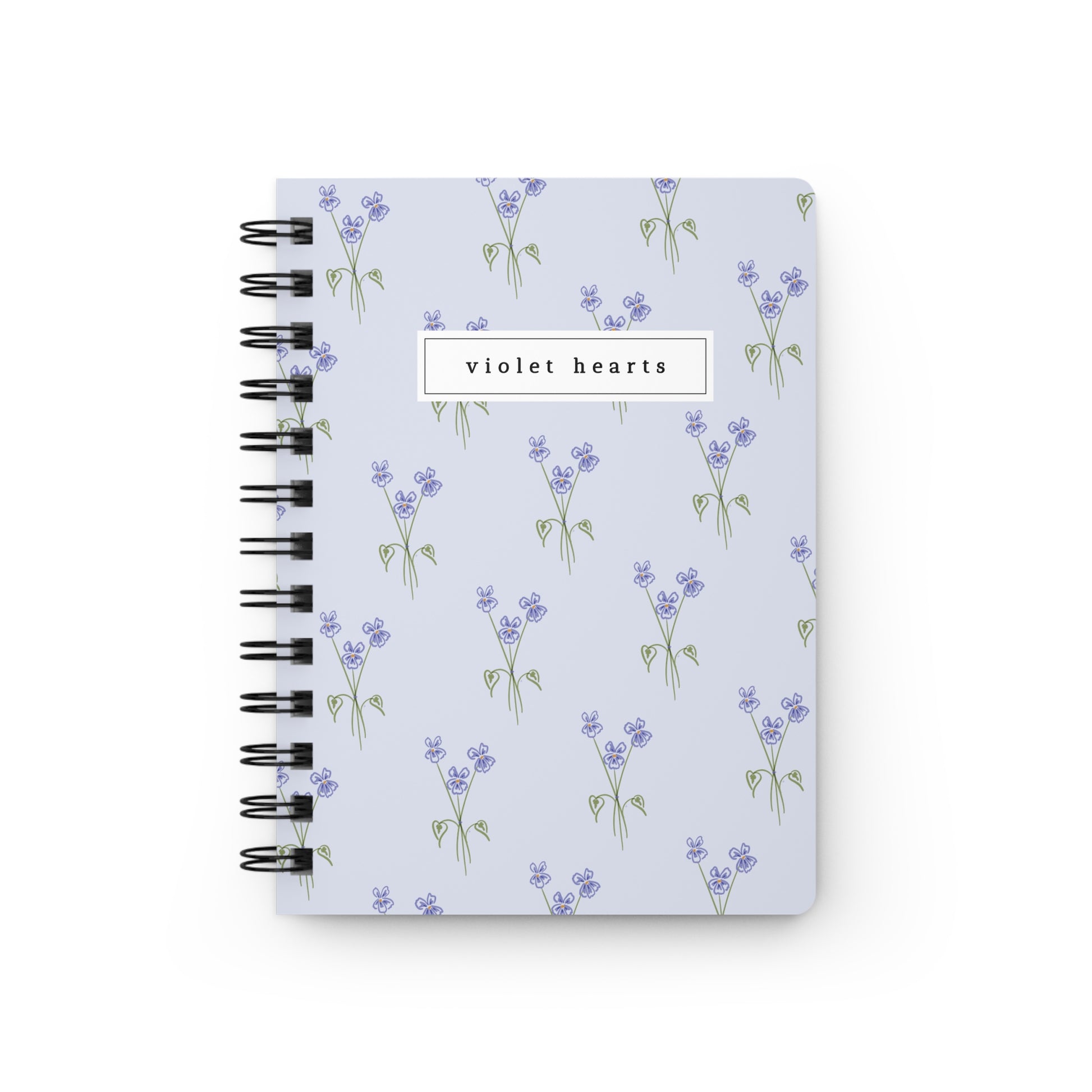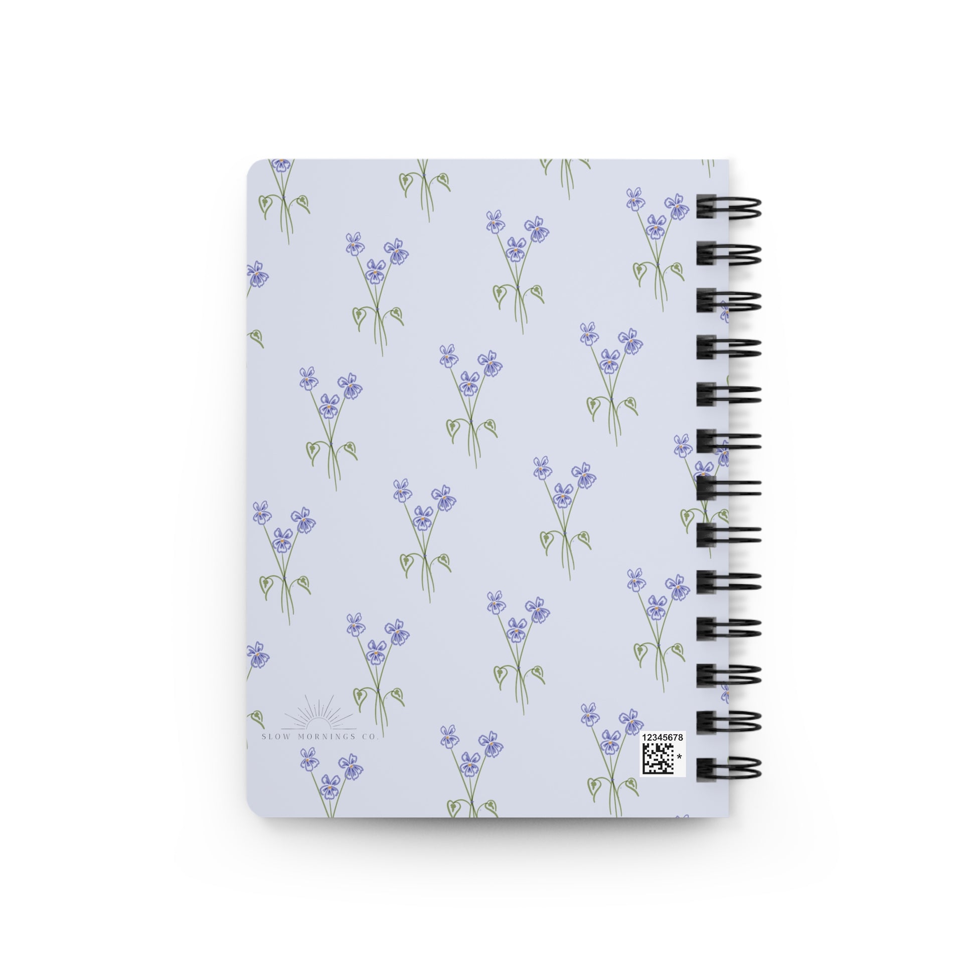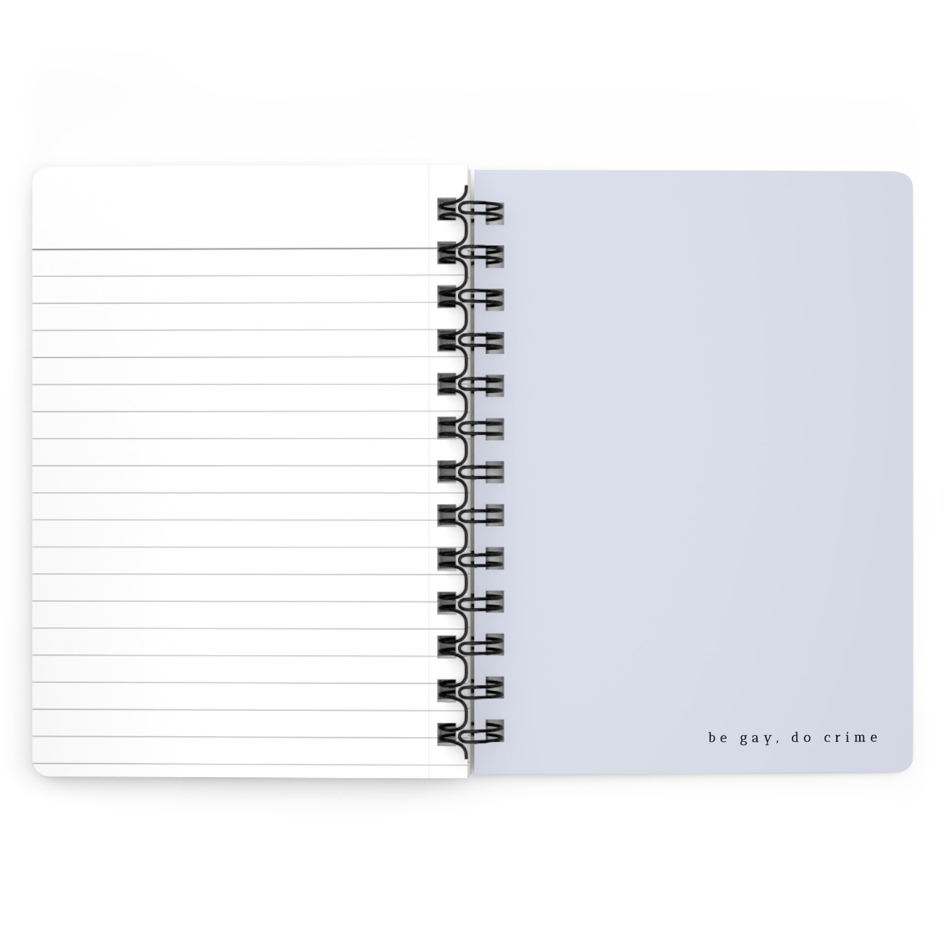 Featuring violet flower digital artwork by queer artist and Slow Mornings Co owner, Shelby Melissa, and the phrase "Violet Hearts," this spiral notebook is a celebration of LGBTQ+ people. The phrase is used to evoke the connections between queerness and Sappho's poems utilizing violets and small purple flowers. And of course, what queer notebook would be complete without a "be gay, do crime" on the inside of the back cover?
