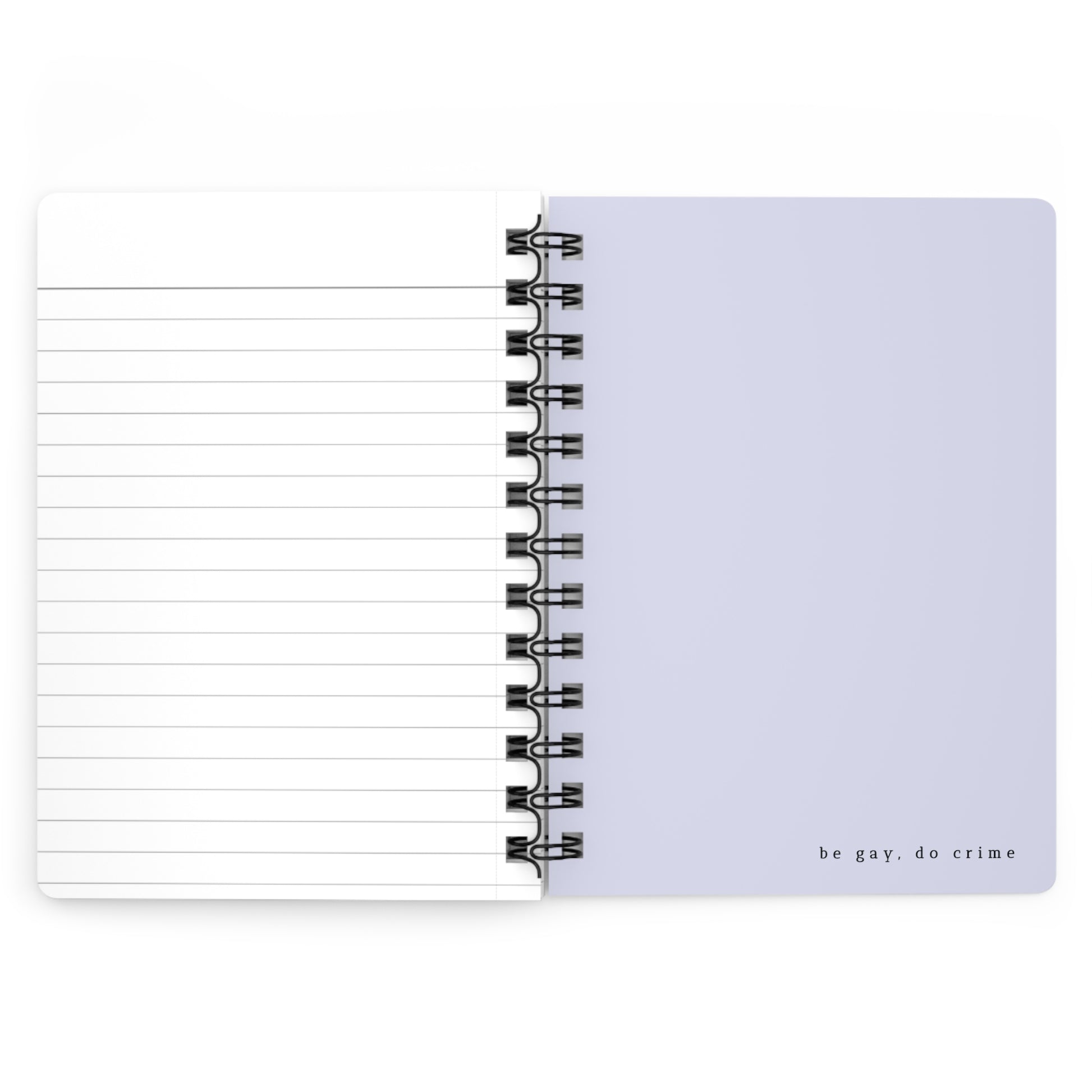 Featuring lavendar flower digital artwork by queer artist and Slow Mornings Co owner, Shelby Melissa, a funky blob background, and the words "Lavender Pride" this spiral notebook is a celebration of LGBTQ+ people. The words "Lavender Pride" are meant in opposition to the Lavender Scare, a period of American history, beginning the late 1940s, in which gay employees were purged of their federal jobs due their sexuality. Lavender did become the color of resistance for the queer community, and remains as such to this day. And of course, what queer notebook would be complete without a "be gay, do crime" on the inside of the back cover?